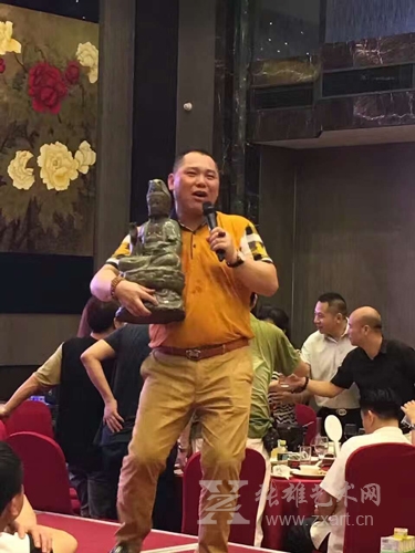 最后,福建省古玩商会厦门分会吴盛辉会长,代表主办方做了《总答谢》:“我有三个没想到——1.没想到天气这么不给力,活动计划因两次台风而改动,从室外移到室内,从赏月变为义演;2、没想到大家如此给力,对活动给予充分理解和支持,在此表示感谢!3、没想到办活动、做善举如此费力,由于种种原因未能尽善尽美;借此恳望大家谅解和支持!各位踊跃参与,充分而生动地说明“台风无情人有情,灾后重建鉴菩提”!活动也再次说明福建省古玩商会厦门分会具有一定的凝聚力,刚刚起步的【一鸿慈善基金会】开始发挥扶贫济困的作用!我们将在省会和厦门市相关部门的领导下,团结全体会员,更上一层楼,让古玩交流为社会帮扶做出新的贡献!今天活动得到社会各界广泛关注和支持,尽管台风给厦门带来重创,很多会员单位和个人都蒙受不同程度的损失,但是接到慈善义演通知,他们都伸出援手,用现金或物质或其他形式表达爱心(捐赠芳名附后)……在此,我代表福建省古玩商会厦门分会和活动承办方、协办方,向关心这次活动的全体会员、参加活动的相关领导、艺术家、媒体、工作人员、酒店和全体嘉宾,致以衷心的感谢。”