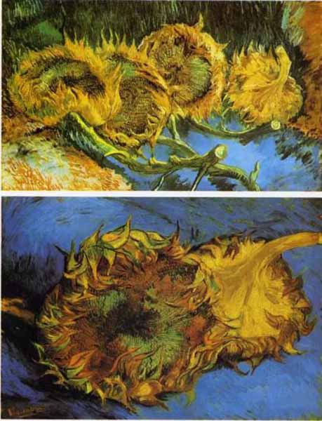 上:4个剪下来的向日葵 1887年8-9月 巴黎 下:2个剪下来的向日葵 1887年8-9月 巴黎